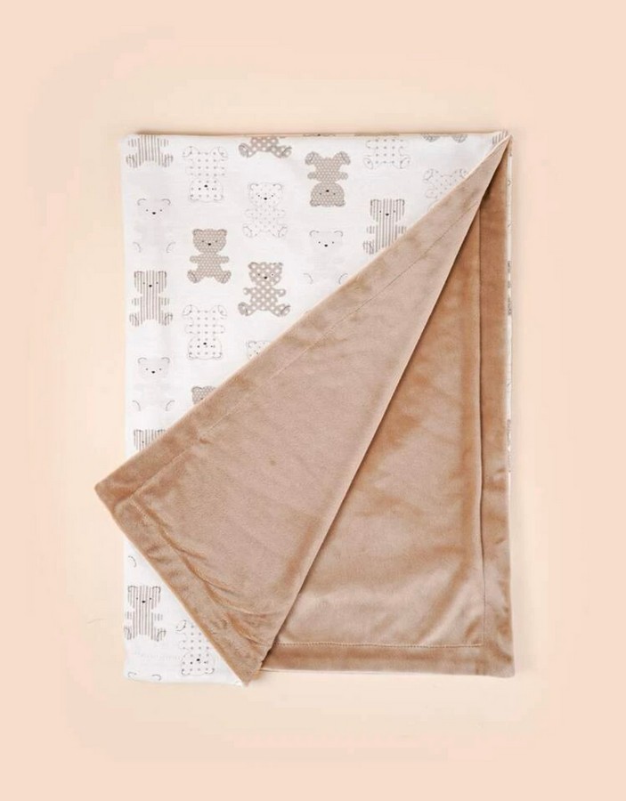 Dvipusis pledas kūdikiui - pleduko išorė pasiūta iš labai švelnios ir malonios liesti medžiagos, o vidinėje pusėje yra medvilnės pamušalas, padekoruotas mielais meškučiais.