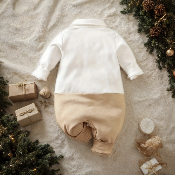 Smėlio spalvos šventinis romperiukas kūdikiui | Kostiumėlio dizainas, 100 % medvilnė